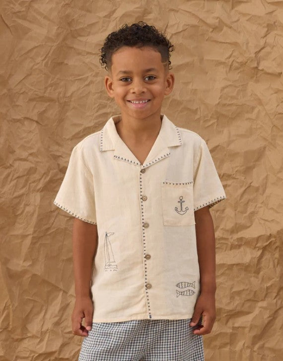 This button up boys shirt features a lapel collar and chest pocket. Enjoy seaside days in this cool look.