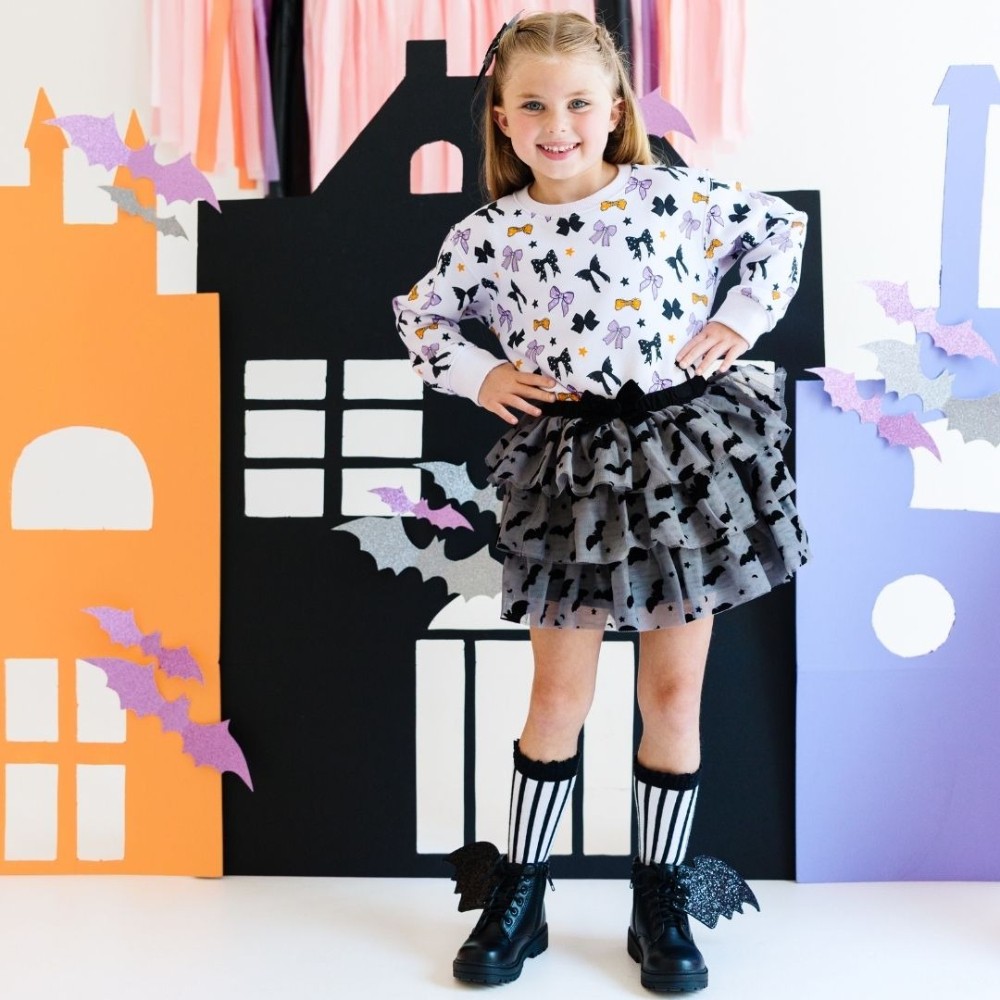 Every little girl needs the perfect hair clip to complete her look! The Glitter Bat Halloween Coquette Bow Clip is the perfect hair accessory for celebrating Halloween.