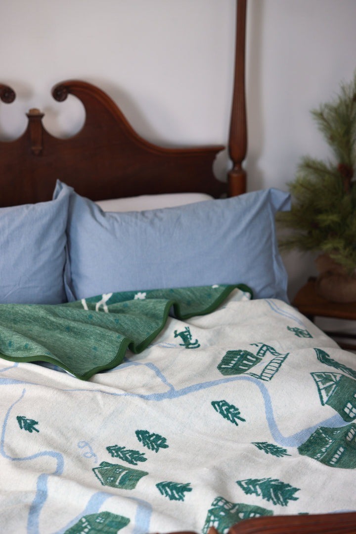 Did you hear that? It’s the joyful ring of sleigh bells only a pattern like this could conjure. With a pop of blue paired with classic evergreen, this sleigh ride’s made to last all winter.