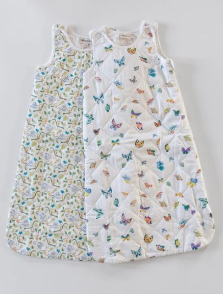 We're over the moon to introduce you to our new wearable blanket, the Happy Monkey Sleep Sack. Crafted from super soft 100% organic cotton, it will help your baby sleep soundly through the night and at nap time. Available in two sizes: 0-9 Months and 9-18 Months. Also offered in our Madame Butterfly print.