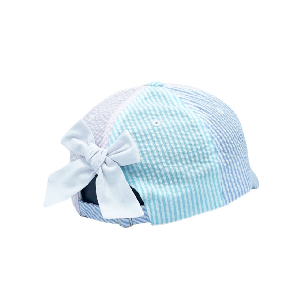 Stripes don’t get any sweeter than pastel seersucker. This Multicolor Bow Baseball Hat combines reimagined grace, preppy charm, and sun-protecting, functional sportswear for a new style to add more magic to her everyday look all spring and summer long.