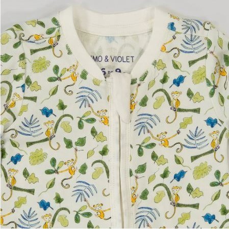The perfect one-piece in our Happy Monkey print. With fold-over hand mittens (for sizes up to 9-12 months) to ensure no scratches, fold-over foot cuffs for versatility, and a double zipper for easy diaper changes.
