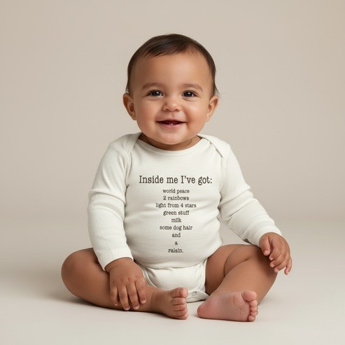 The Inside Me Poem Long Sleeve Romper is a perfect gift for newborns and their parents. Made from soft and breathable organic cotton, this romper is comfortable for babies to wear all day long. The endearing poem print on the front adds a touch of sweetness to your baby's outfit and makes it a great gift for newborns.