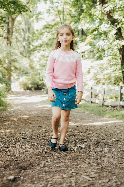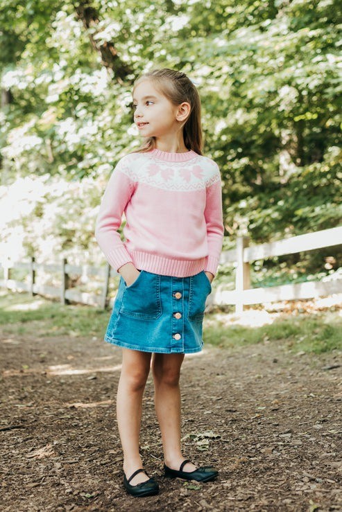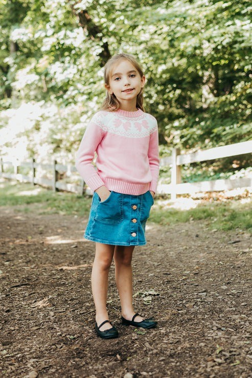 Our sweet pink bow knit sweater will keep her cozy all fall and winter!