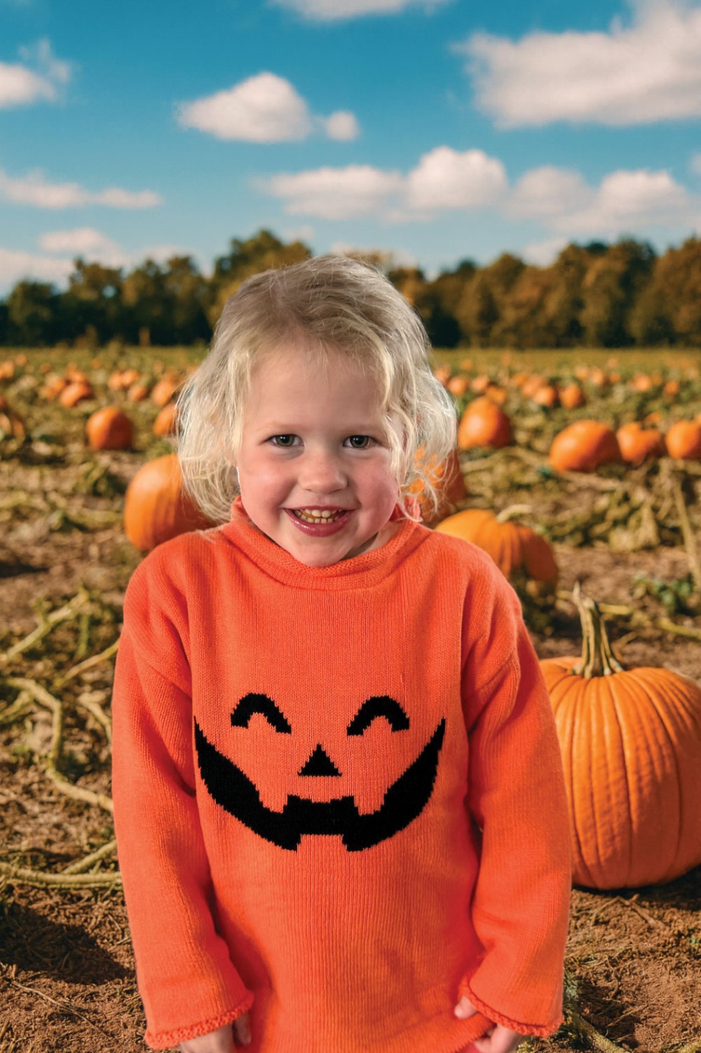Bring a touch of Halloween spirit to your child’s wardrobe with this festive rollneck sweater, knit in soft, breathable 100% cotton. The cheerful orange base is accented with bold black detailing, and a playful Jack-O-Lantern motif at the front makes it a seasonal favorite. Designed with a cozy rollneck and a relaxed fit, it’s as comfortable for school days as it is for pumpkin-patch adventures. Machine-washable for easy care, this sweater is available in children’s sizes for a festive look the whole season long.