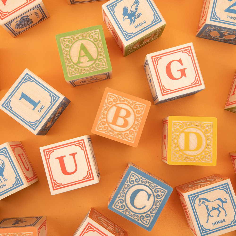 Love these blocks. Teach children to spell, sequence, and stack; sort, build, and match. Four full alphabets, colorful numbers, math symbols, plus a menagerie of hand-crafted animals. Detailed embossing on two sides of each block.