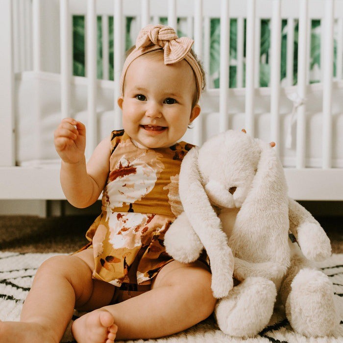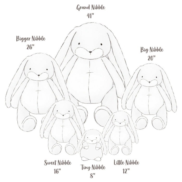 Sweet Nibble Bunny is sweet, tender, and oh-my-gosh unbelievably soft. This stuffed animal has a hand-embroidered face, pink cheeks, and a big fluffy tail. Features eggnog cream and warm white fur, with velour-lined ears perfect for personalizing. This plush bunny will become your best friend indeed.