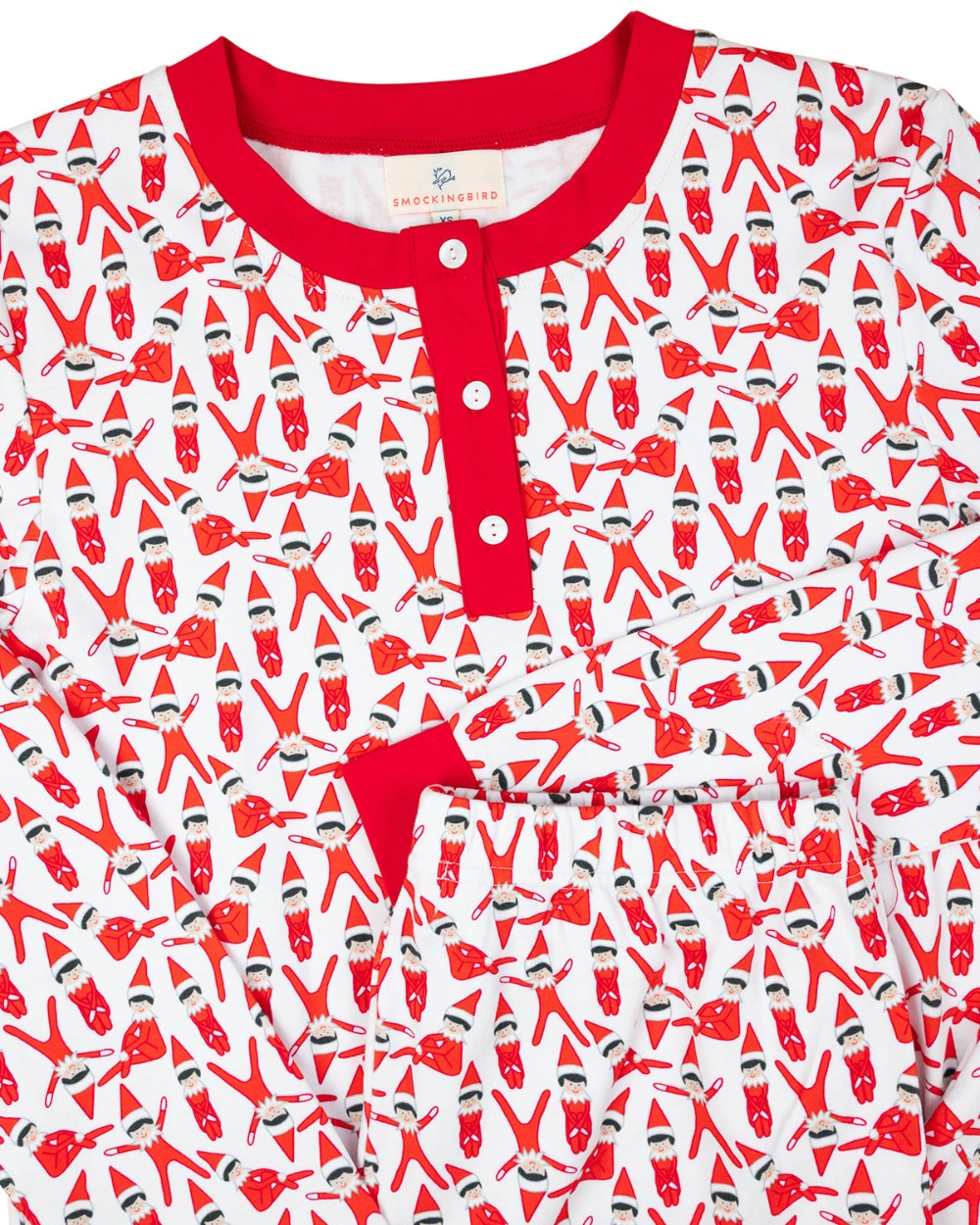 Get into the holiday spirit with our Shelf Elf Adult Pajamas! Featuring a playful all-over elf print, these cozy PJs are perfect for matching with the family while staying warm and comfortable. The long-sleeve henley-style top and jogger-style pants with red cuffs and a elastic waistband make this set a must-have for Christmas mornings and cozy nights by the fire.